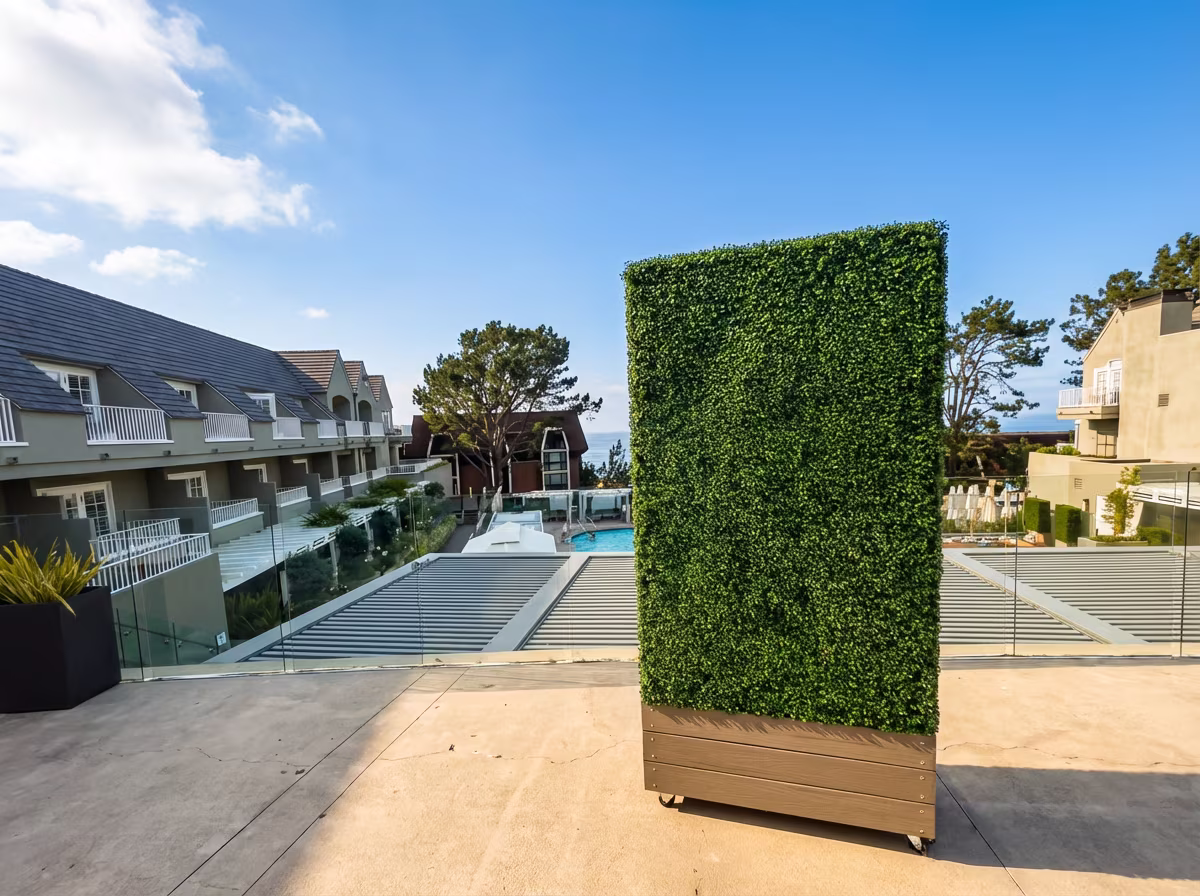 L'Auberge Del Mar was spending heavily on rental hedges for every wedding on their oceanfront deck. CalifauxScapes built long-lasting artificial boxwood hedges on locking casters so the hotel's staff could wheel them into place in minutes. No more rental fees, no more delivery logistics, and the hedges look the same at every event.